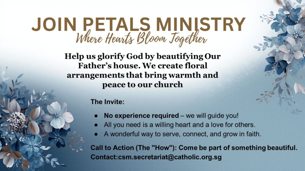 Email for more information: csm.secretariat@catholic.org.sg