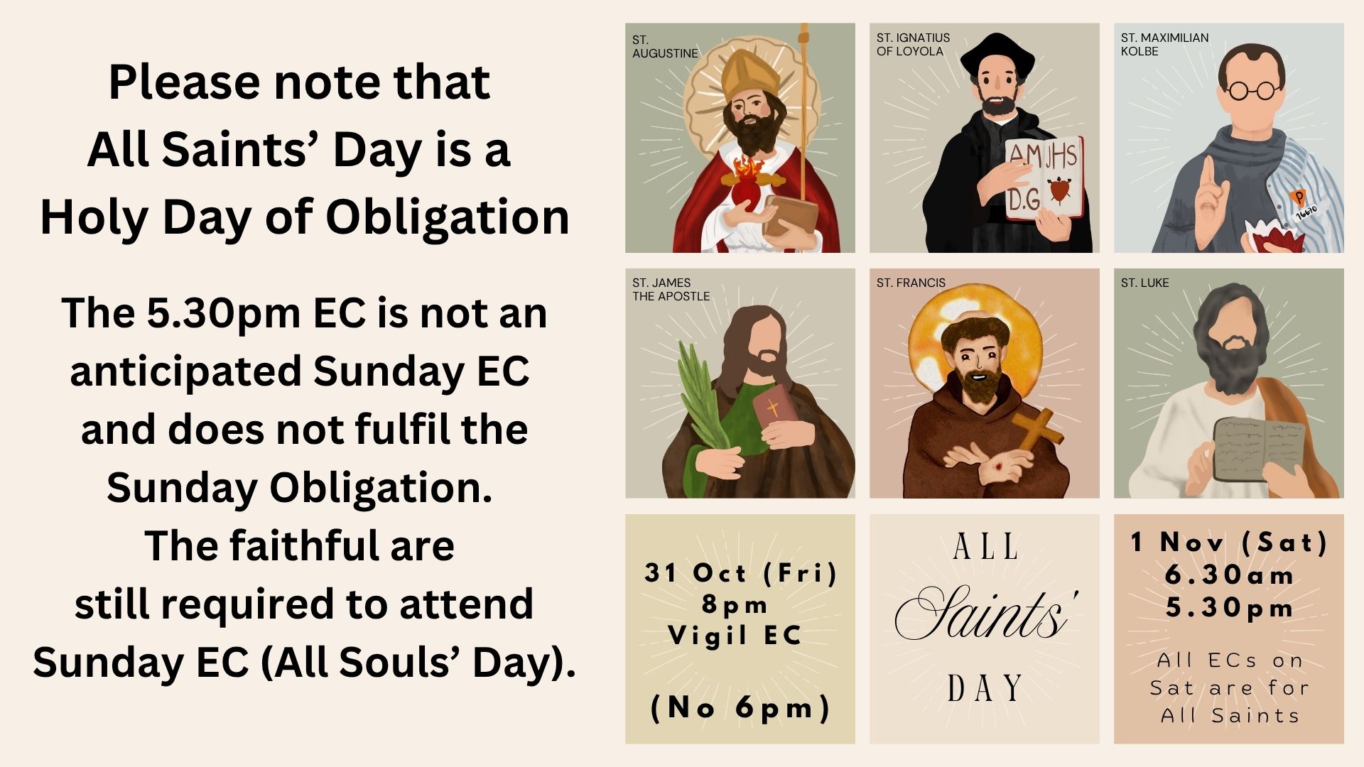 Please note that All Saints’ Day is a Holy Day of Obligation.