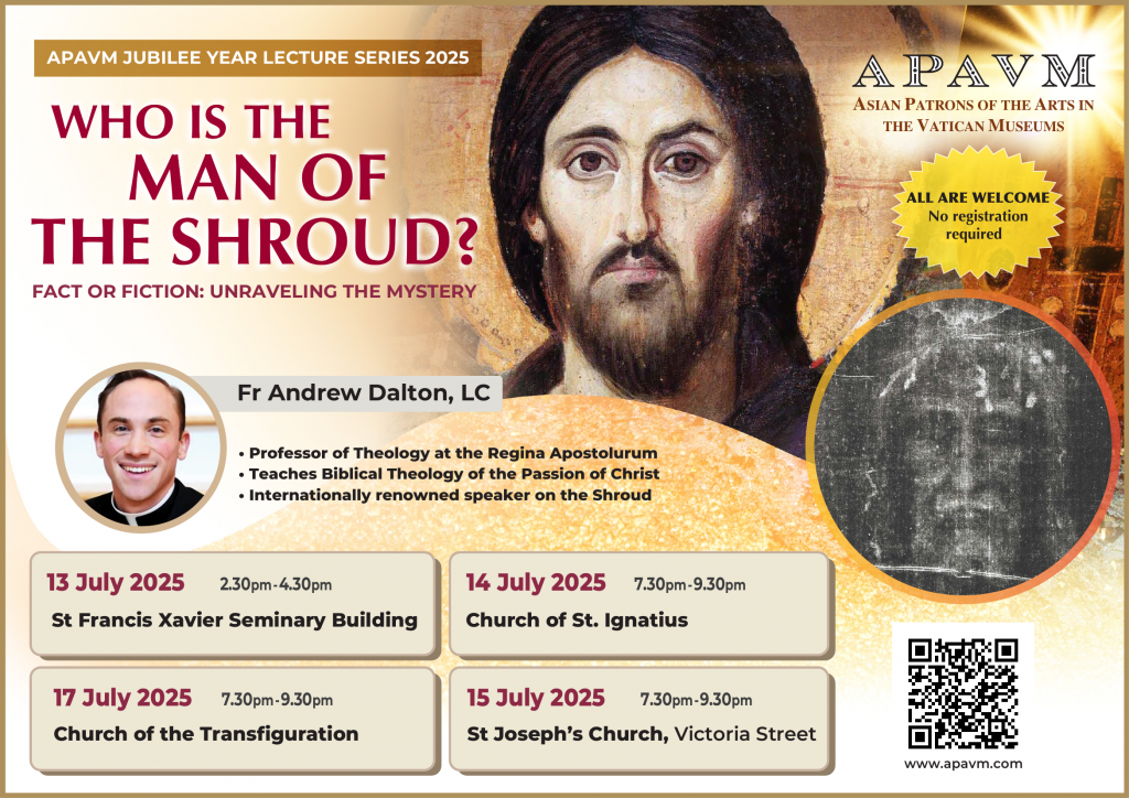 There will be a talk on the Holy Shroud of Turin entitled “Who is the Man of the Shroud”  by visiting priest Father Andrew Dalton LC, in July 2025 at 4 venues. Father Dalton is a Professor of Theology and expert on the Holy Shroud. His approach bridges the gap between scientific observation and theological interpretation.