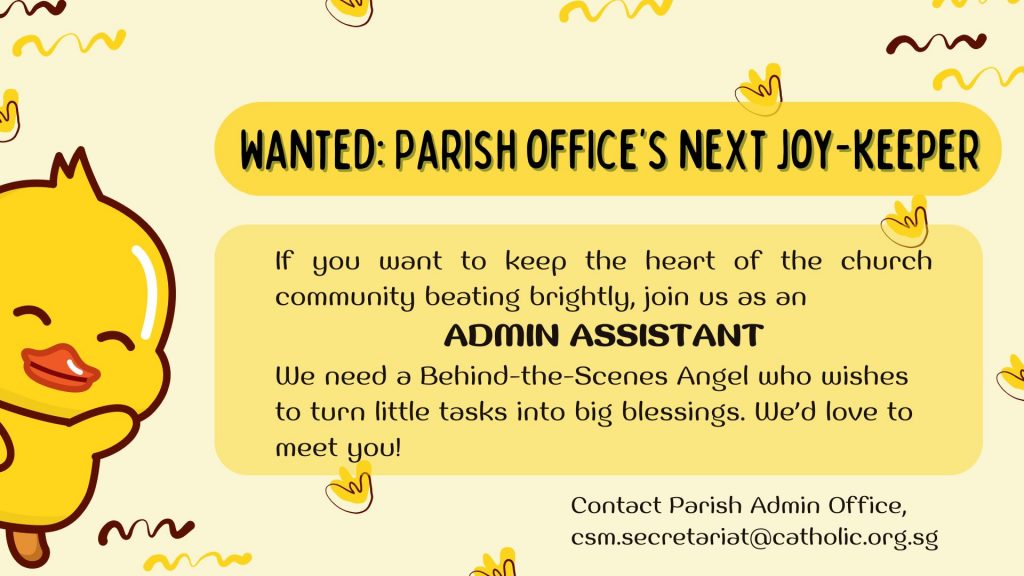 Email for more information: csm.secretariat@catholic.org.sg