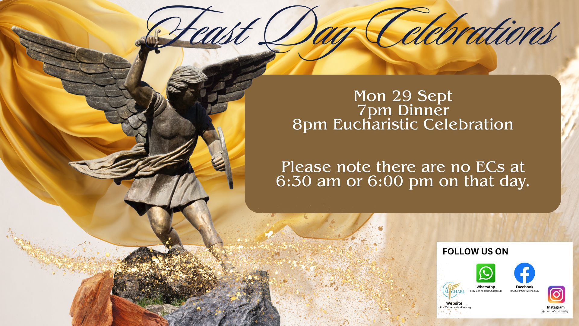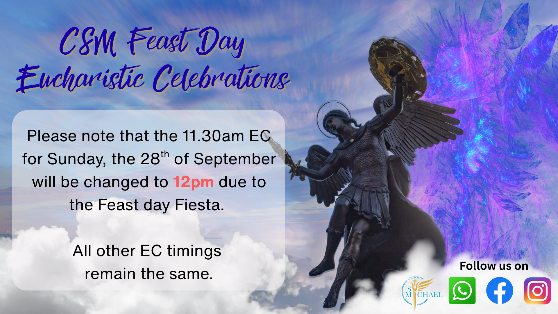 Please note: Eucharist Celebration for Sunday, 28 Sep will be 12pm instead of 11.30am due to Feast Day Fiesta.